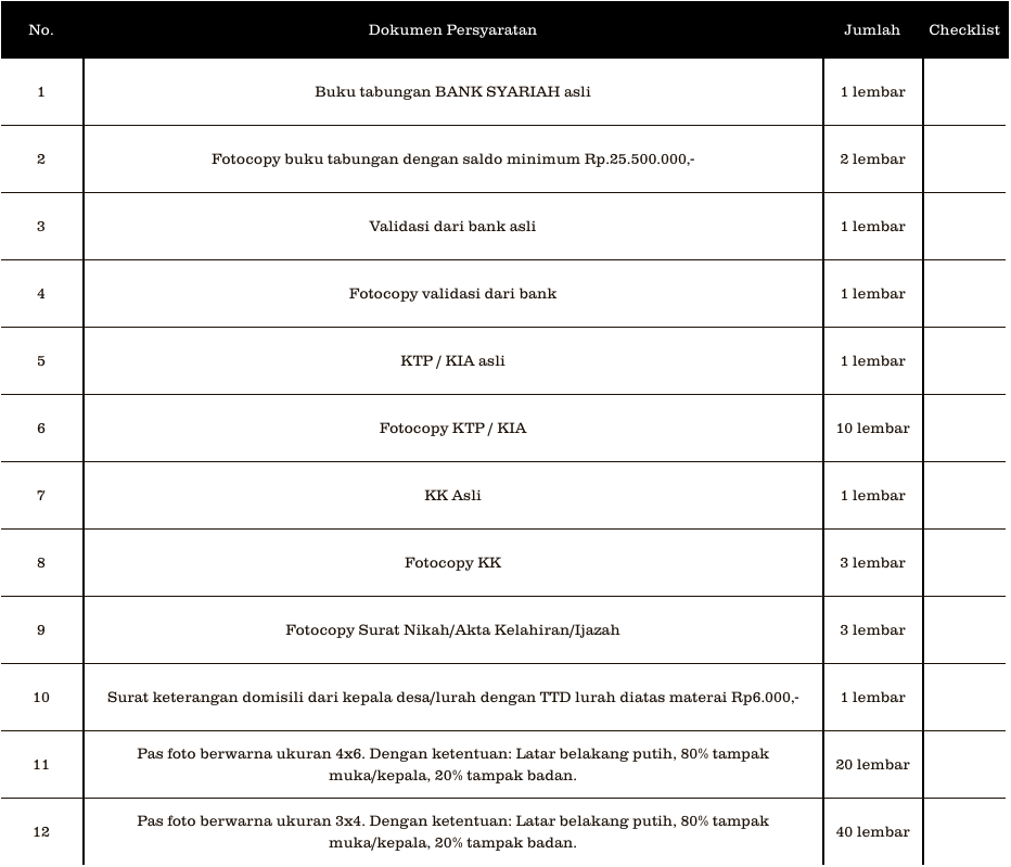 Untuk informasi lebih lanjut mengenai persyaratan pendaftaran, jadwal keberangkatan, dan rincian biaya program Haji Reguler, silakan hubungi tim kami atau kunjungi kantor Ummu’l Quro. Tim kami siap membantu Anda dalam setiap tahapan pendaftaran.